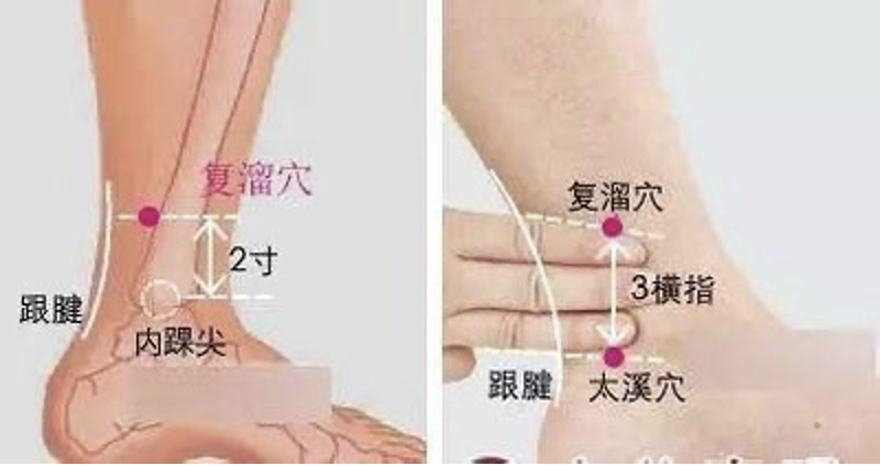 复溜 ฟูลิว (Fuliu, KI7) ฟู้ลิว ตำแหน่งอยู่ที่ขาด้านในเหนือตาตุ่มด้านใน 2 ชุ่น