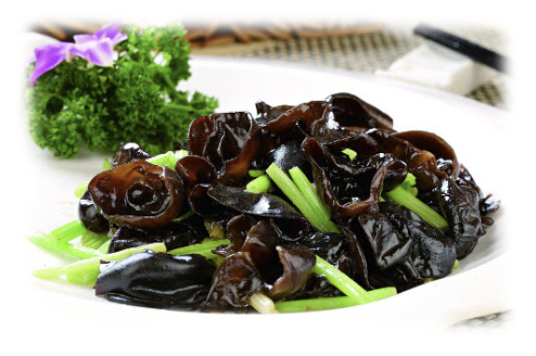 | 1. คึ่นช่ายฝรั่งผัดเห็ดหูหนูดำ 芹菜炒木耳 |