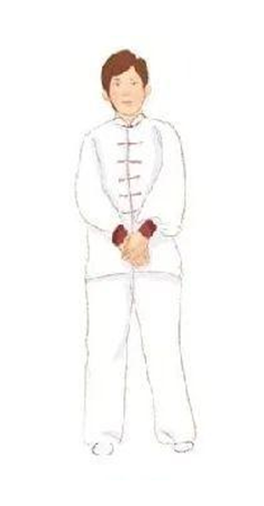 เริ่มต้นด้วยการยืนอย่างธรรมชาติ แยกเท้าทั้งสองให้อยู่ในระดับเดียวกับหัวไหล่ นำมือทั้งสองวางซ้อนกันบริเวณหน้าท้อง มือซ้ายอยู่ด้านบน ทำให้ร่างกายรู้สึกผ่อนคลายเป็นธรรมชาติ และหายใจเข้า-ออกอย่างช้าๆ 6 ครั้ง