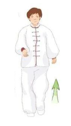 ยกขาซ้ายเปรียบเสมือนกำลังก้าวขาไปด้านหน้าจากนั้นค่อยๆลดขาลง และแขนขยับไปมาอย่างธรรมชาติ สลับซ้าย-ขวา ทำต่อเนื่อง 6-12 ครั้ง