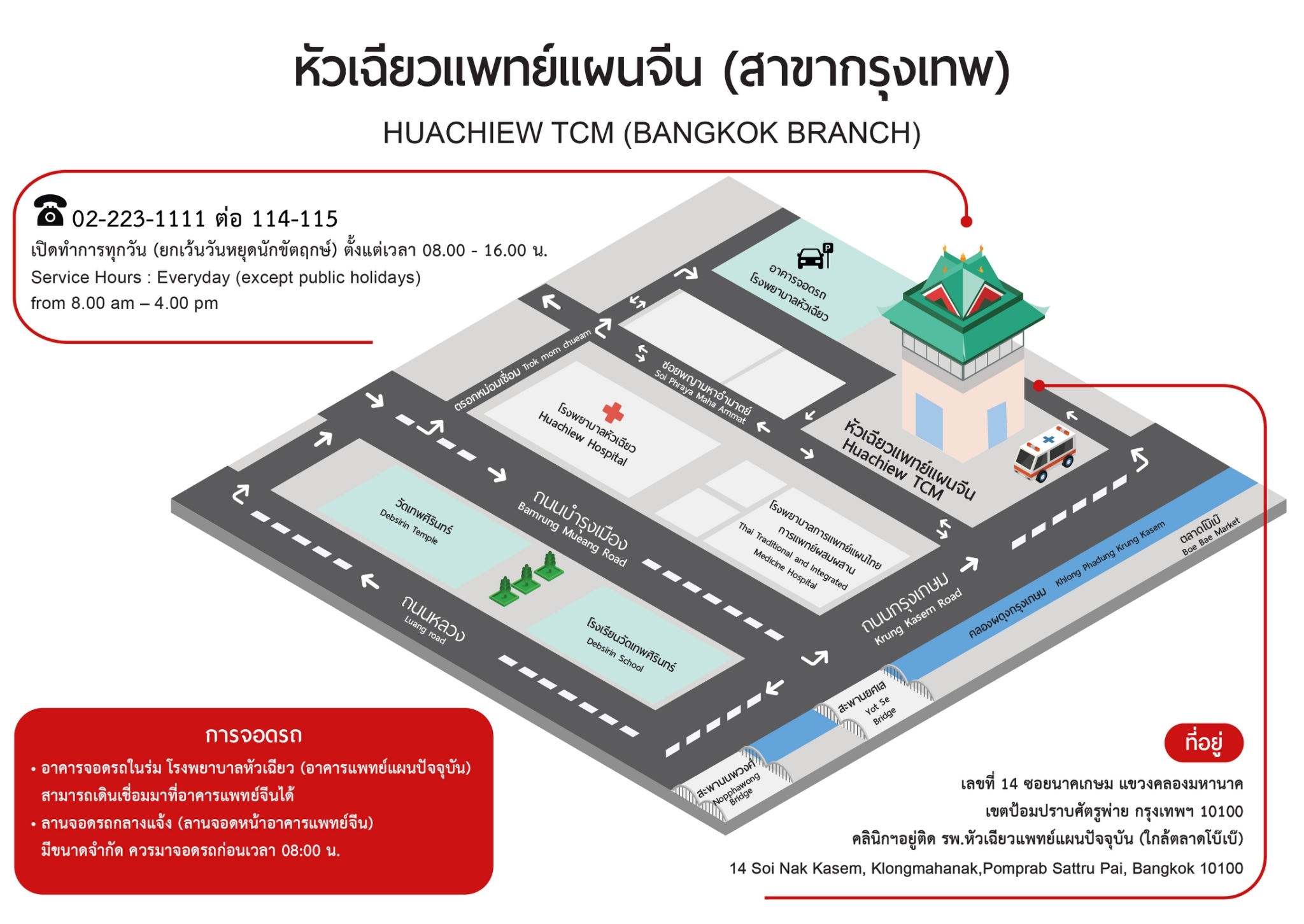 2. การเดินทางโดยรถประจำทาง (สามารถนั่งรถประจำทางสายต่าง ๆ ลงที่ป้ายใกล้คลินิกการแพทย์แผนจีนหัวเฉียว สายที่ผ่าน)
